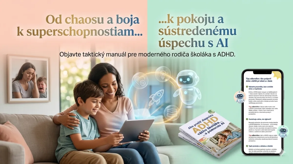 Po tom, čo som pomohla desiatkam ďalších slovenských rodičov dosiahnuť rovnaké výsledky, som tento systém zdokonalila do krok-za-krokom príručky: "ADHD Prežitie s AI